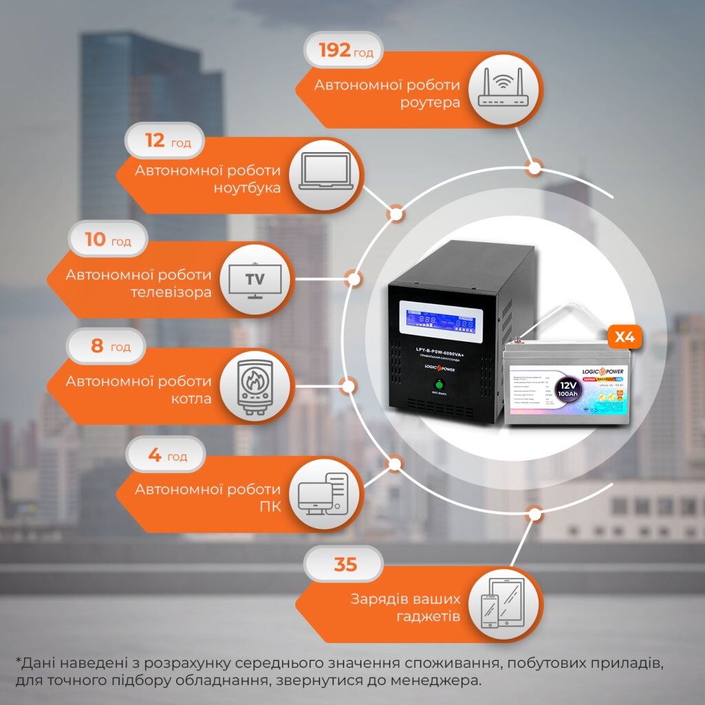 Магазин / Источники бесперебойного питания / Комплект резервного питания LP (LogicPower) ИБП + гелевая батарея (UPS B6000 + АКБ GL 4800W)