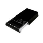 В денежном ларе Maken CX-350 выдвижная система реализована с помощью телескопических направляющих, а 3-х позиционный замок имеет скрытое расположение на дне корпуса. Это делает невозможным проникновение посторонних лиц в денежный ящик.