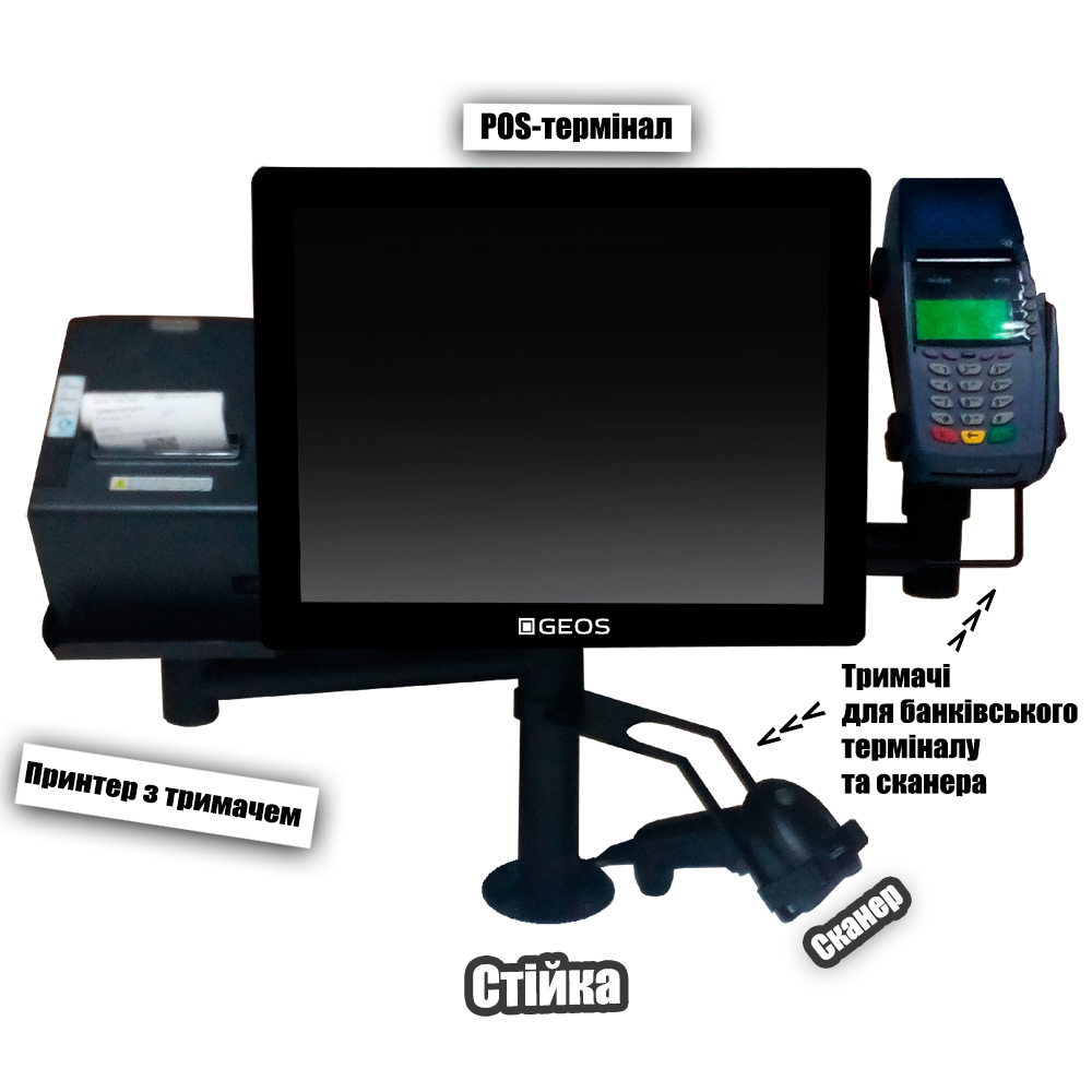 Стойка, Держатели, POS-терминал, Принтер, Сканер; |