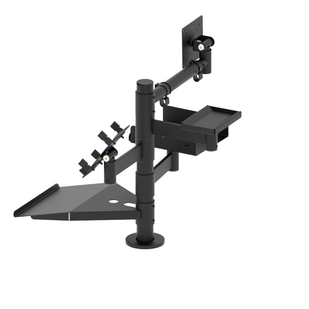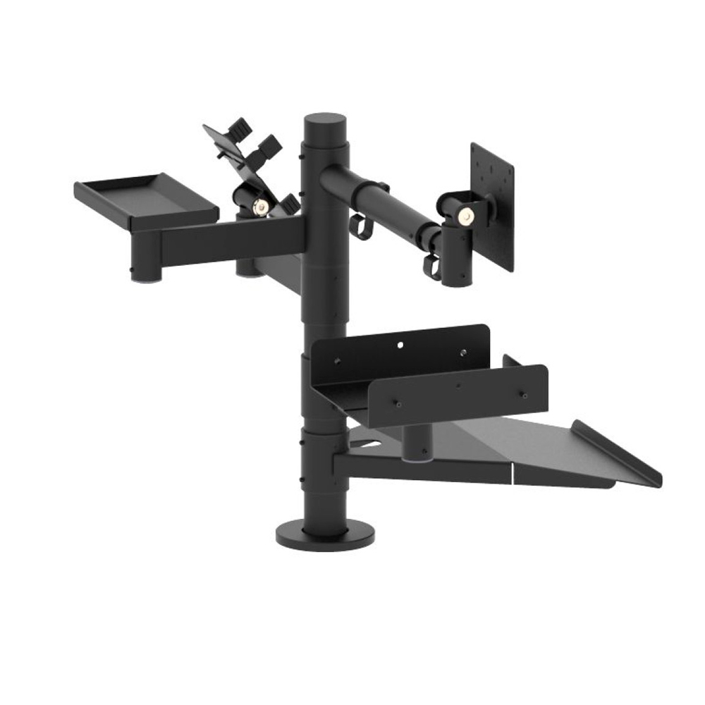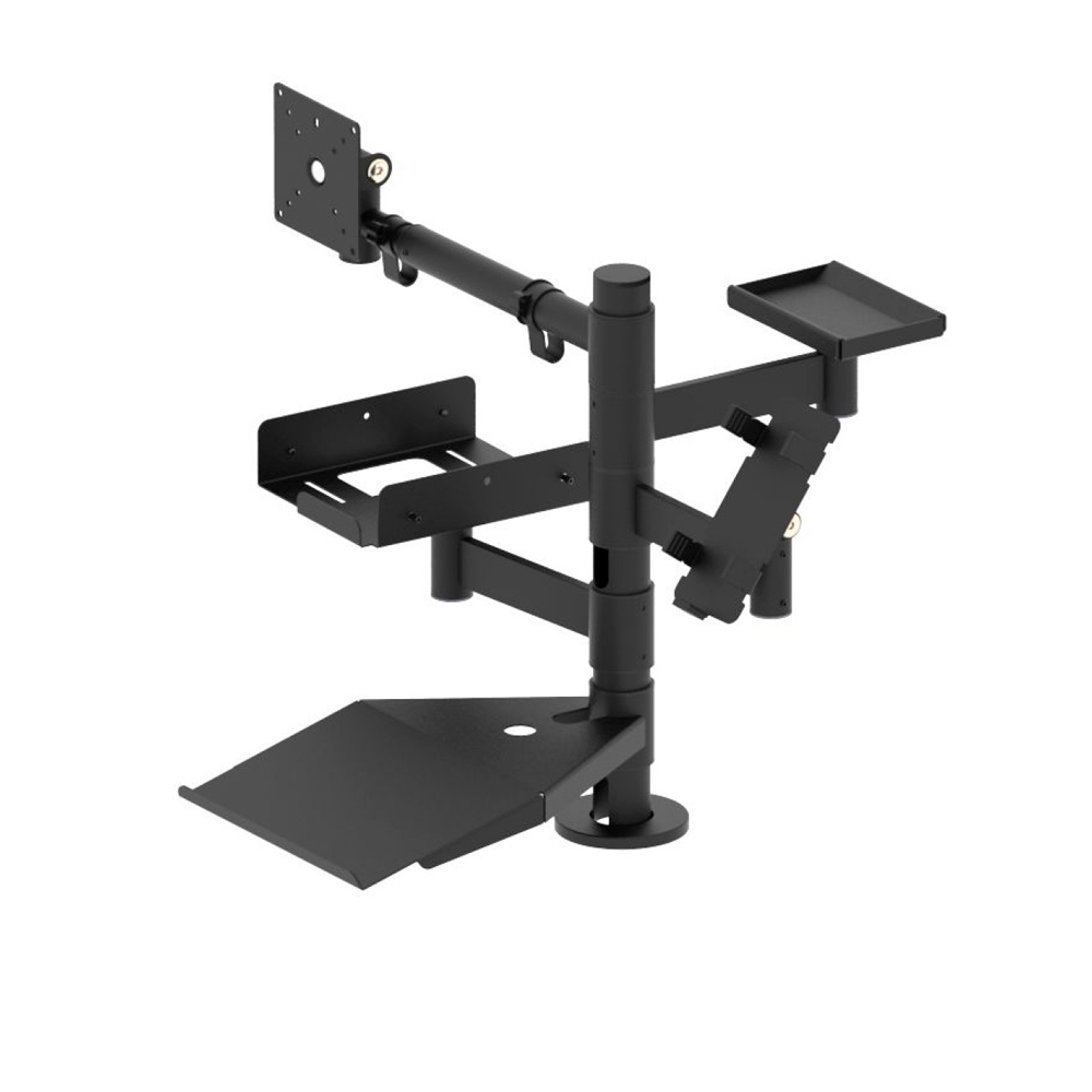 стойка с креплениями; телескопический кронштейн для дисплея; выносной держатель под чековый принтер; выносной держатель для банковского терминала; монетница; полка для клавиатуры |