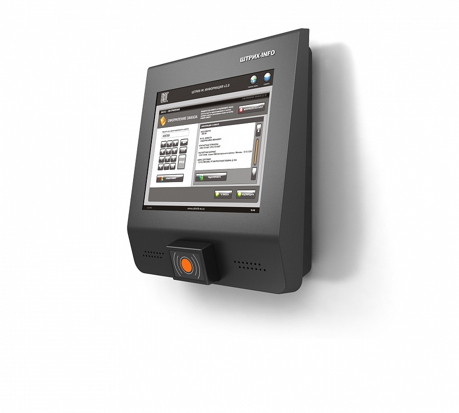 Информационный киоск ШТРИХ представляет собой компактный настенный компьютер с процессором CPU Intel Celeron 1.5 ГГц и цветным антивандальным сенсорным экраном (технология ПАВ). Он поставляется с операционной системой Microsoft Windows 7, что позволяет Вам использовать данный информационный киоск не только как компьютер, но и для установки Ваших конфигураций для выполнения поставленных задач. Благодаря большому количеству опций функциональность этого информационного терминала глубокая, а сфера применения становиться шире.