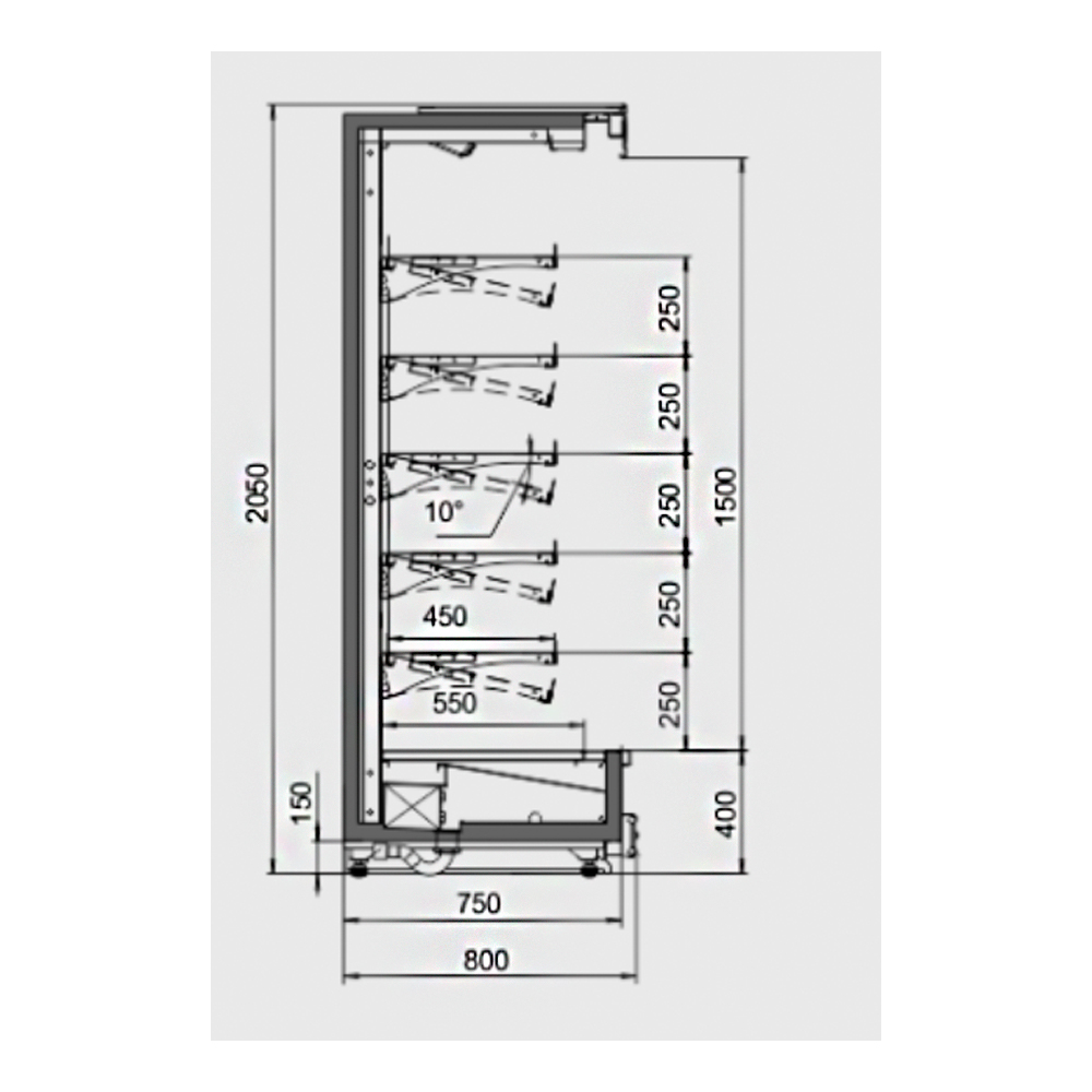 Магазин / Коммерческое холодильное оборудование / Холодильные шкафы / Горка среднетемпературная (0˚С … + 8˚С) под выносной холод (1875 мм)