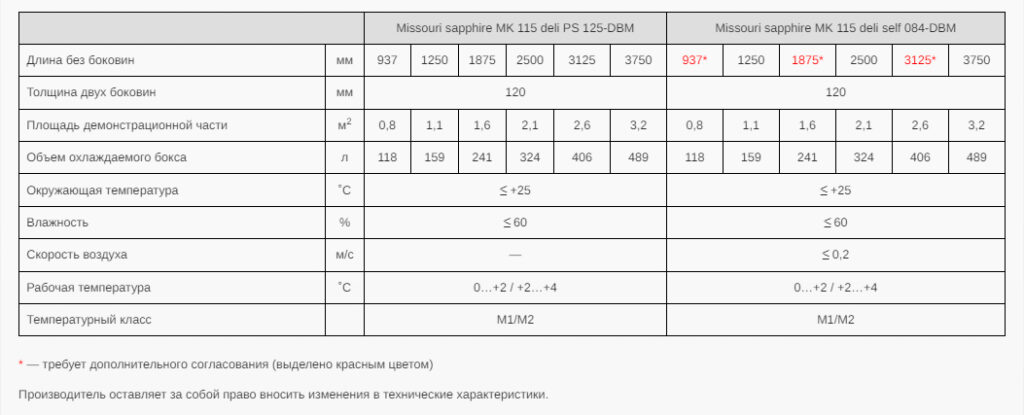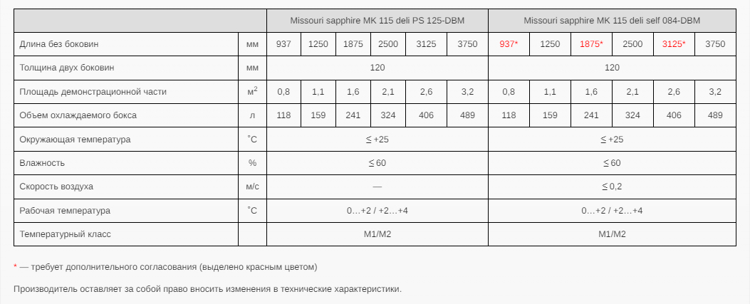 Холодильная витрина MISSOURI SAPPHIRE MK 115 DELI PS/SELF M (0˚С … + 8˚С) под выносной холод
