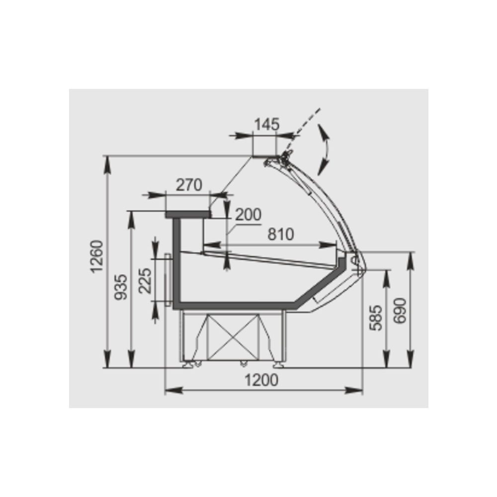 Магазин / Коммерческое холодильное оборудование / Холодильные витрины / Витрина среднетемпературная (0˚С … + 8˚С) со встроенным агрегатом