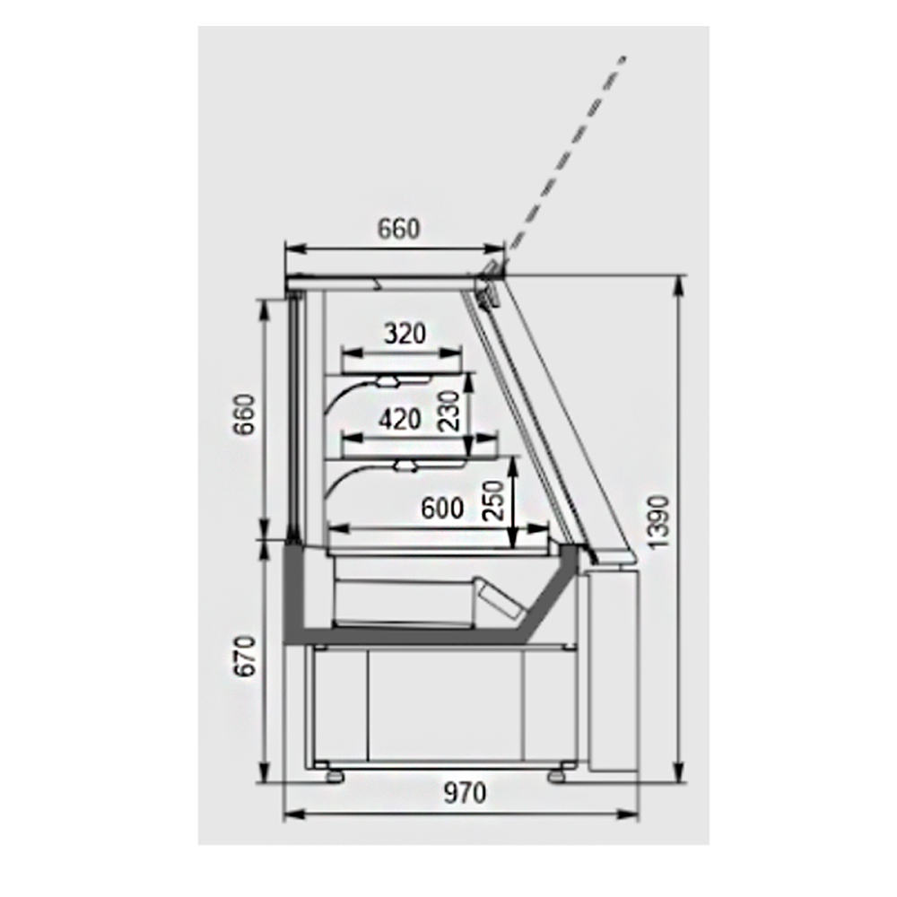 Магазин / Коммерческое холодильное оборудование / Холодильные витрины / Витрина среднетемпературная (+ 4˚С … + 6˚С) кондитерская со встроенным агрегатом