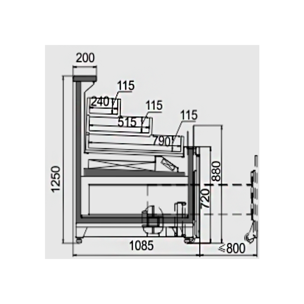 Магазин / Коммерческое холодильное оборудование / Холодильные витрины / Холодильная витрина Миссури А VF (R290) со встроенным агрегатом