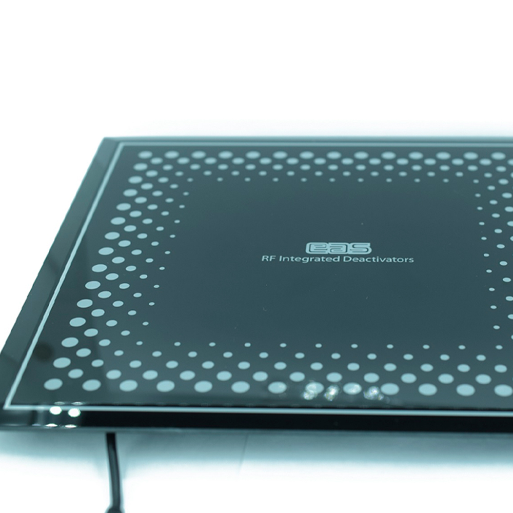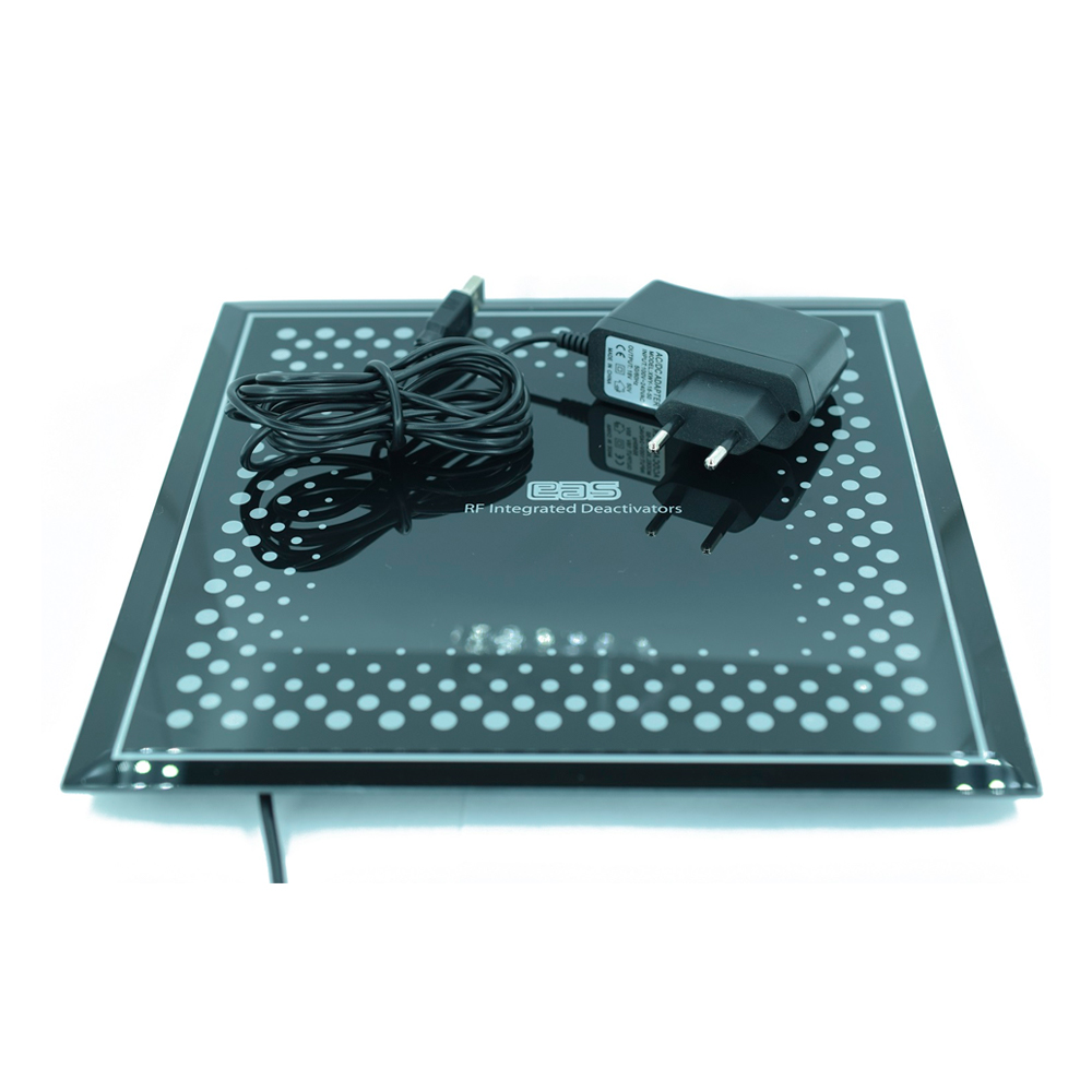 Бесконтактный радиочастотный деактиватор со стеклянной панелью предназначен для бесконтактной деактивации радиочастотных мягких меток, иными словами делает гибкую этикетку НЕ активной. Для деактивации защитной этикетки необходимо всего лишь провести товар с этикеткой защитной над панелью деактиватора. Высота деактивации до 20 см. Модель состоит из деактивационной панели и блока питания. Его особенность во встроенно в панель электроники деактиватора. Деактиватор защитных меток необходимо располагать в кассовой зоне.