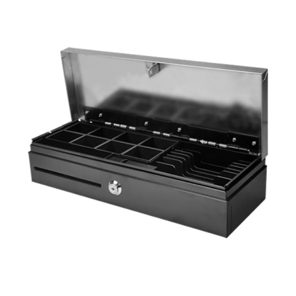 Грошовий ящик Maken FT-460 FlipTop серії та інтерфейсом Epson standard RJ11. Для зручності оператора та економії місця скринь має вертикальне відкриття.