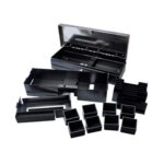 Оснащення знімними та регульованими відділеннями для банкнот (6 штук), для монет (8 штук), а також для чеків.