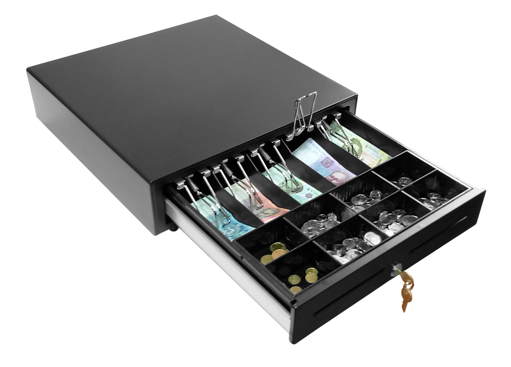 MG 16S — класичний висувний грошовий ящик, призначений для зберігання грошових коштів (купюр, монет) та чеків. Грошова скринька має внутрішній пластиковий вкладиш (не знімний), який має 8 регульованих відділень для монет та 5 для банкнот, а також оснащений спеціальними металевими власниками купюр.
