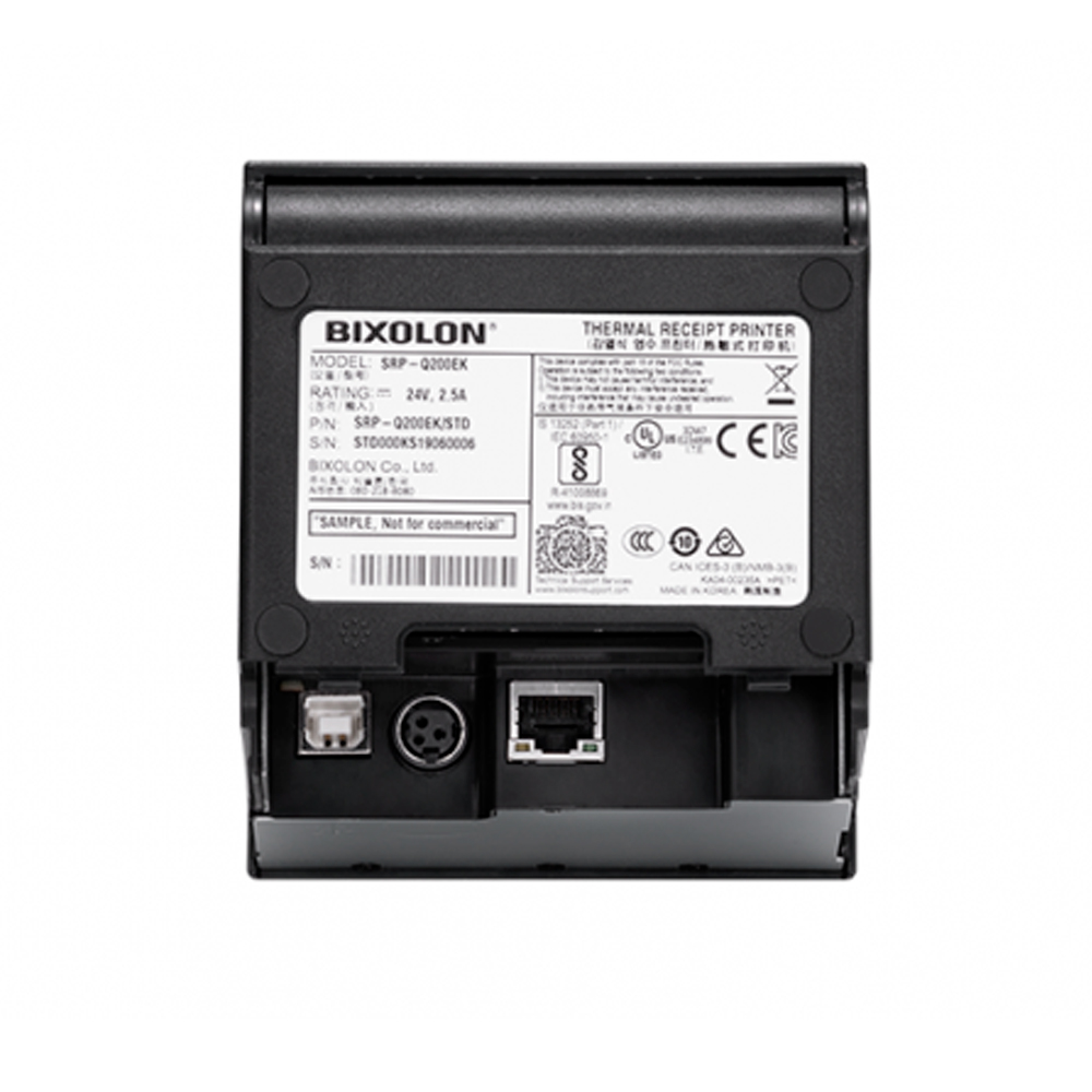 Інтеграція принтера чеків Bixolon SRP-Q200 з периферійними пристроями через інтерфейси USB та RS-232, а з’єднання з мережею за допомогою кабельного Ethernet та бездротового Wi-Fi. Для підключення грошової скриньки пристрій має телефонний роз’єм RJ-11.