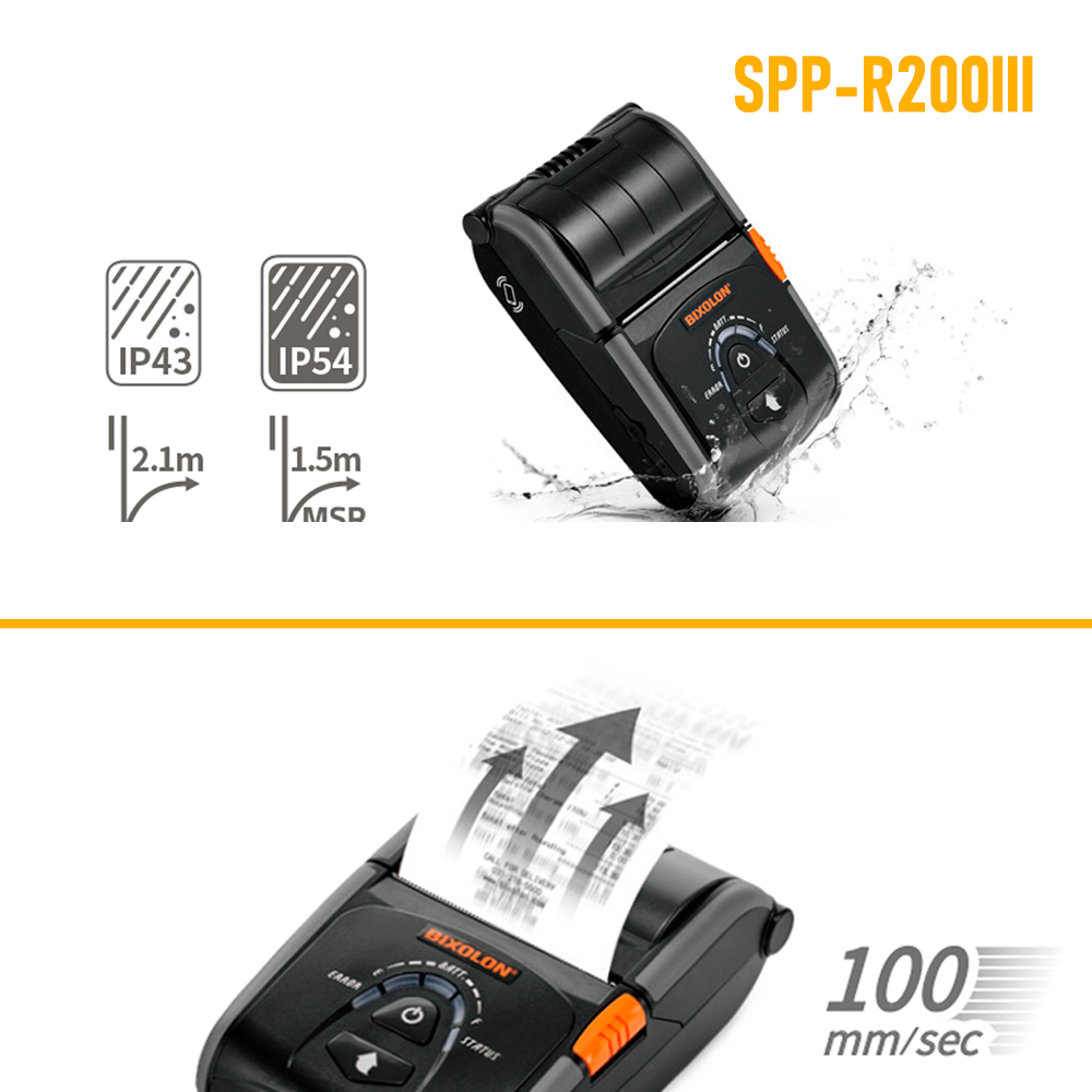 Маючи міцну конструкцію для захисту від вологи та пилу, принтер чеків Bixolon також перевірений на падіння до 2,1 м та ступінь захисту IP54 у захисному футлярі. Швидкість друку 100 мм/с при роздільній здатності друку 203dpi. Принтер для приймання/маркування SPP-R200III має високу надійність.