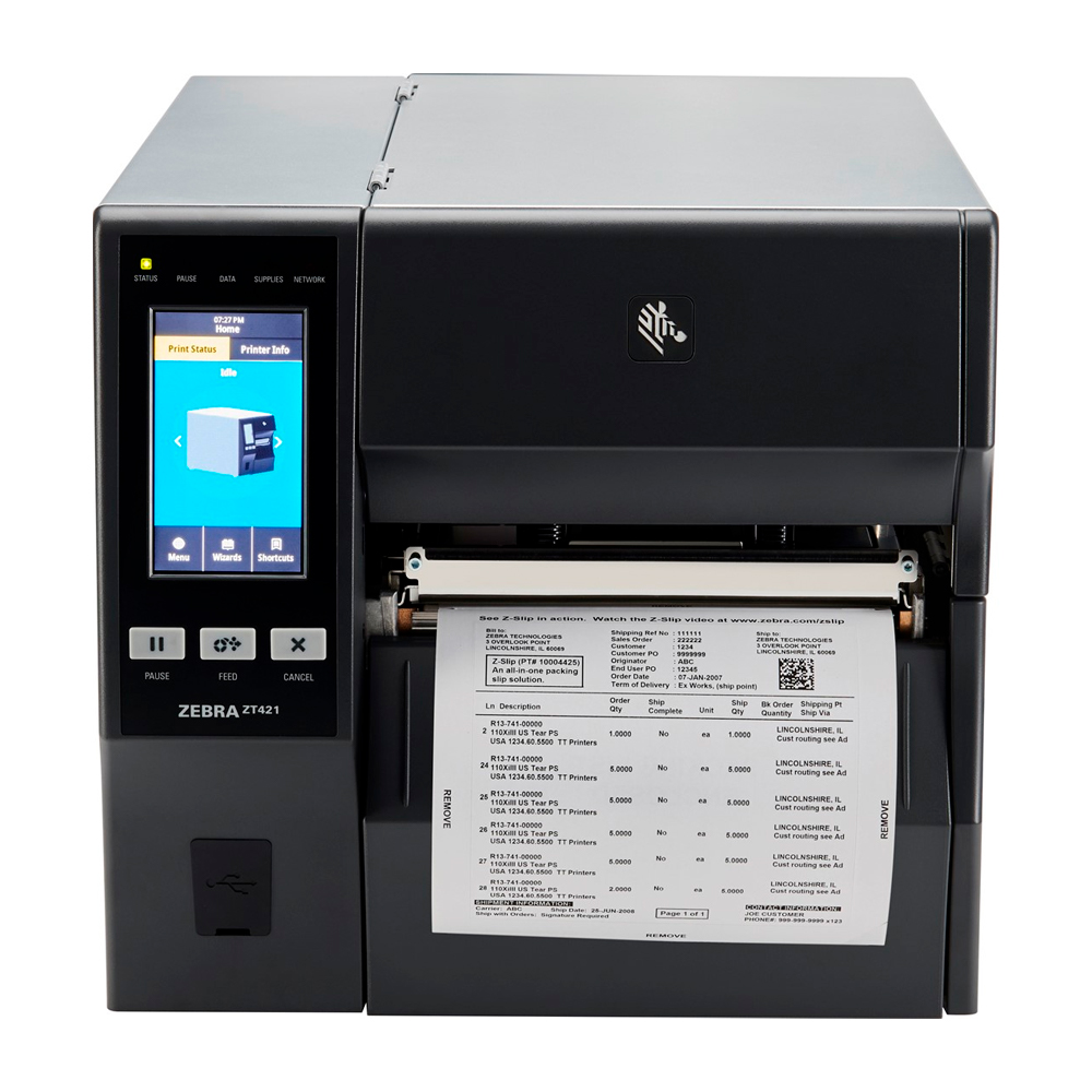 Zebra ZT421 — промисловий принтер етикеток останнього покоління для високоякісної швидкісного друку етикеток, бірок, ярликів з шириною друку з максимальною шириною друку — 168 мм. Швидкість друку для даної моделі індустріального принтера штрих кодів є однією з найвищих у порівнянні з аналогічними пристроями й досягає 305 мм/сек.