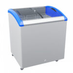 Морозильна скриня M200SF з комбінованим алюмінієвим профілям — професійне морозильне обладнання, що призначене для зберігання та реалізації морозива, напівфабрикатів та заморожених продуктів. Особливістю цієї моделі є удосконалена конструкція корони та покращене ущільнення скла, що забезпечує надійну герметичність камери. Обладнання оснащене скошеним склом та енергозберігаючою LED-підсвіткою, яка вбудована в корону та не займає додаткового об’єму, що не перешкоджає завантаженню продукції. Широка кольорова гама пластику дає можливість влучно підібрати обладнання під стиль вашої торгової точки. Обладнання енергоефективне та надійно працює при температурі навколишнього середовища до +35°C.