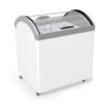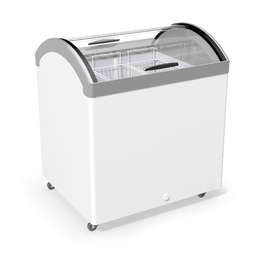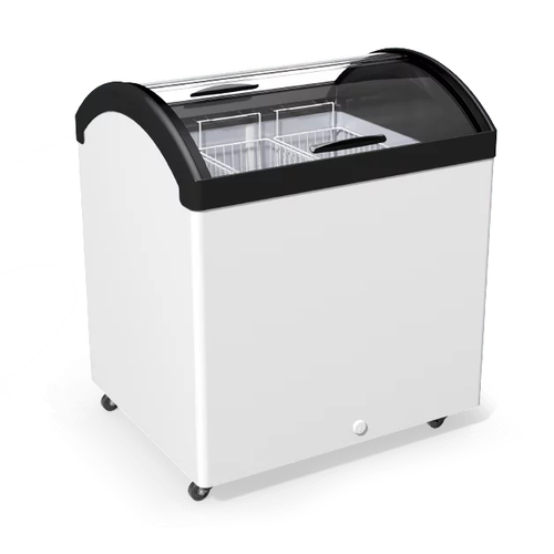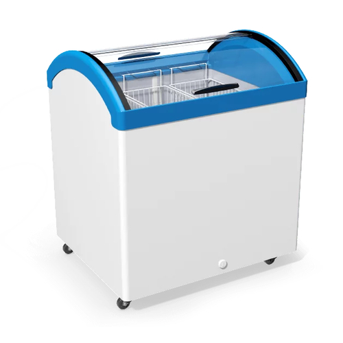 Морозильна скриня «Прикасова» M200V – професійне морозильне обладнання, що призначене для зберігання та реалізації морозива, напівфабрикатів та інших заморожених продуктів. Особливістю скрині є вигнута на обидві сторони форма скла, що забезпечує чудову оглядовість товару та доступ покупцям до товару з усіх боків. Корона обладнання виготовлена з міцного та ударостійкого ABS – пластику з захисним покриттям РММА. Широка кольорова гама пластику дає можливість влучно підібрати обладнання під стиль Вашої торгової точки. Обладнання енергоефективне та надійно працює при температурі навколишнього середовища до +35°C.