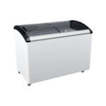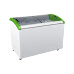 Морозильна скриня M400SF з комбінованим алюмінієвим профілям — професійне морозильне обладнання, що призначене для зберігання та реалізації морозива, напівфабрикатів та заморожених продуктів. Особливістю цієї моделі є удосконалена конструкція корони та покращене ущільнення скла, що забезпечує надійну герметичність камери. Обладнання оснащене скошеним склом та енергозберігаючою LED-підсвіткою, яка вбудована в корону та не займає додаткового об’єму, що не перешкоджає завантаженню продукції. Широка кольорова гама пластику дає можливість влучно підібрати обладнання під стиль вашої торгової точки. Обладнання енергоефективне та надійно працює при температурі навколишнього середовища до +35°C.