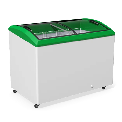Морозильна скриня М400SH — професійне морозильне обладнання, що призначене для зберігання та реалізації морозива, напівфабрикатів та інших заморожених продуктів. Особливістю даної моделі є скошене скло та LED підсвітка, що забезпечують кращу оглядовість та презентабельність товару в обладнанні. Корона обладнання виготовлена з міцного та ударостійкого ABS пластику з захисним покриттям РММА. Широка кольорова гама пластику дає можливість влучно підібрати обладнання під стиль вашої торгової точки. Обладнання енергоефективне та надійно працює при температурі навколишнього середовища до +35°C.
