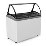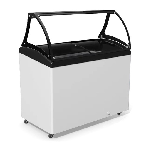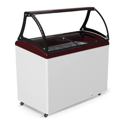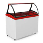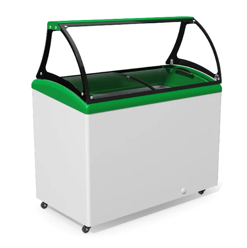 Морозильна скриня M400SL – професійне морозильне обладнання, що призначене для реалізації вагового морозива (джелато). Обладнання оснащене скошеним склом та LED підсвіткою. Особливістю цієї моделі є те, що вона комплектується платформами з нержавіючої харчової сталі, що дає можливість зручно розмістити ємності з ваговим морозивом. Важливим елементом цієї моделі також є скляна надбудова, що згідно з вимогами санітарних служб захищає відкритий продукт від впливу зовнішніх факторів. В сукупності дизайн даного обладнання забезпечує гарну оглядовість та презентабельність продукту. Корона обладнання виготовлена з міцного та ударостійкого ABS – пластику з захисним покриттям РММА. Широка кольорова гама пластику дає можливість влучно підібрати обладнання під стиль вашої торгової точки. Обладнання енергоефективне та надійно працює при температурі навколишнього середовища до +35°C.