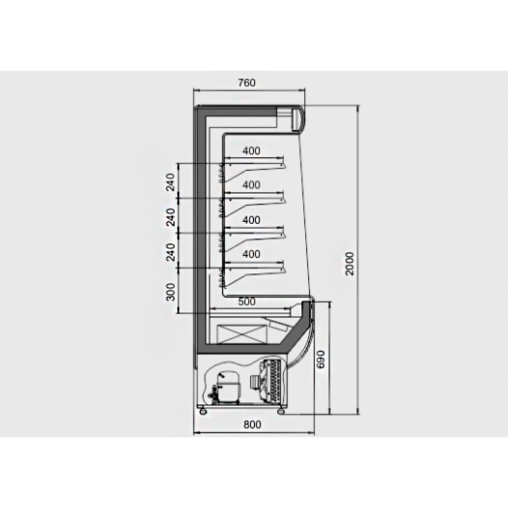 Магазин / Комерційне холодильне обладнання / Холодильні шафи / Гірка середньотемпературна (0˚С … +8˚С) з вбудованим агрегатом (1600 мм)