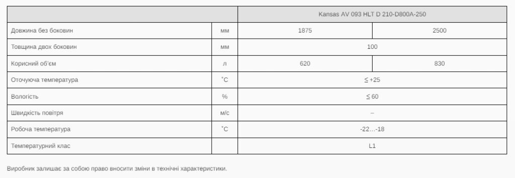 Шафа низькотемпературна KANSAS АV 093 HLT D з вбудованим агрегатом -18˚С …- 22˚С