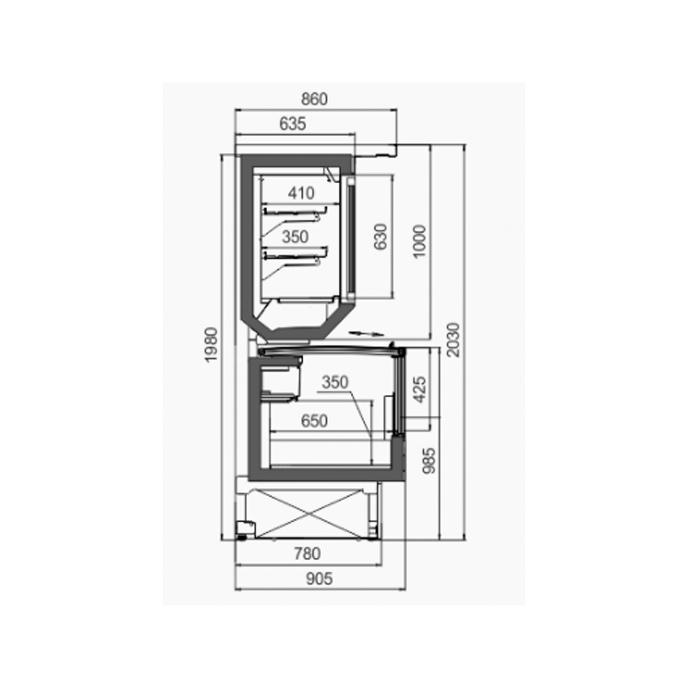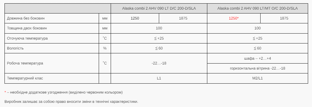 Магазин / Комерційне холодильне обладнання / Холодильні вітрини / Бонета двохоб’ємна ALASKA COMBI ST AHV 090 LT/MT A з вбудованим агрегатом (динаміка та статика)