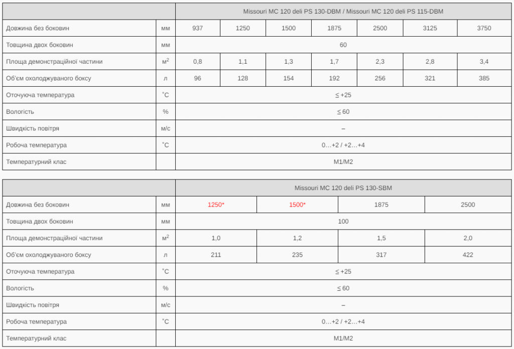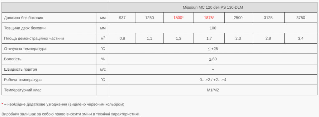 Вітрина середньотемпературна MISSOURI MC 120 DELI PS M з вбудованим агрегатом (0˚С …+8˚С)