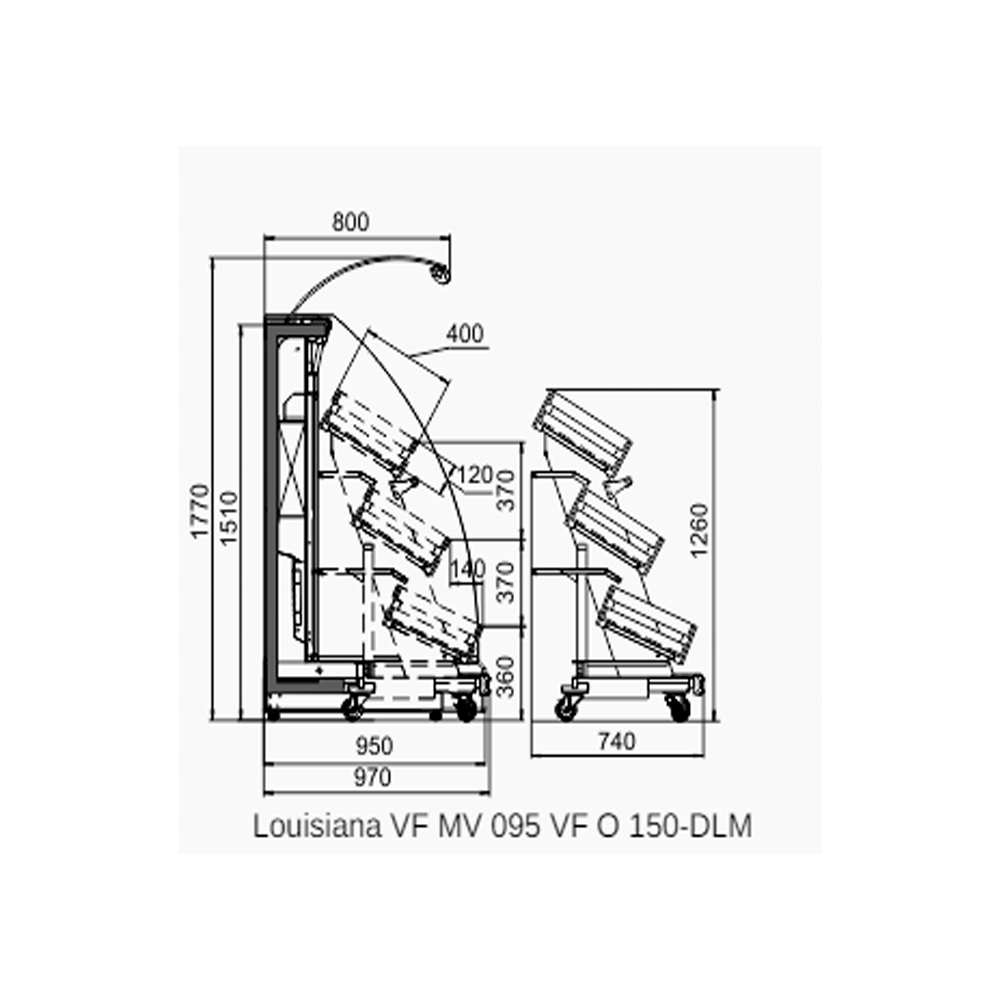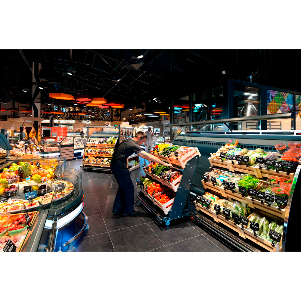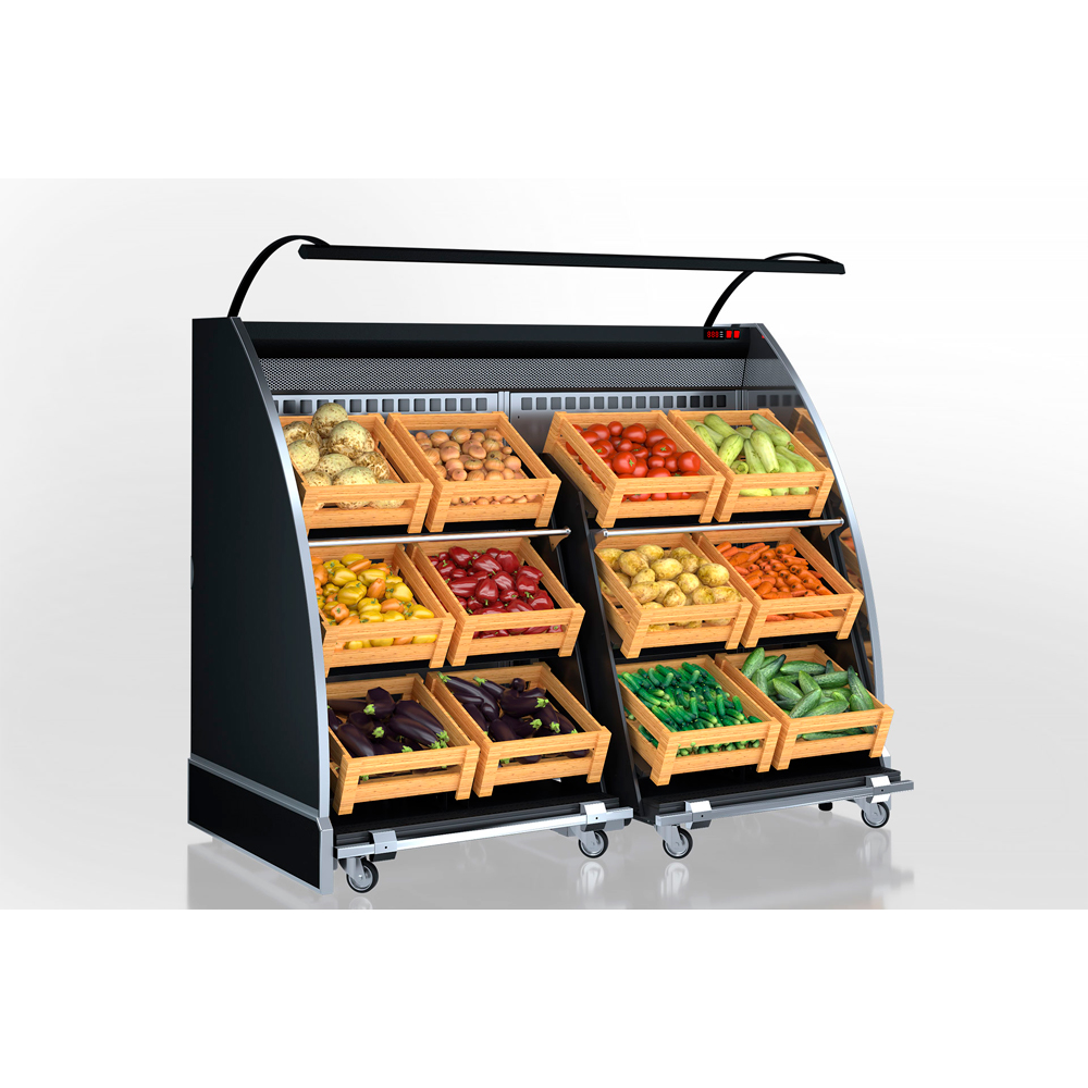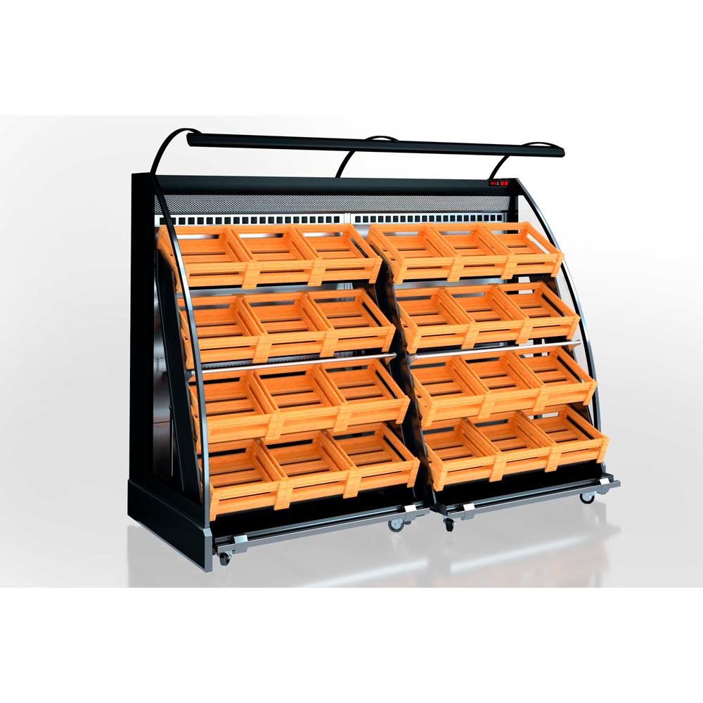 Гірка середньотемпературна “Луїзіана VF” спеціально розроблена для створення в торгових залах маркетів, зон продажу овочів і фруктів. Оригінальна конструкція внутрішнього стелажа на колесах дозволяє створювати експозицію в підсобному приміщенні, не порушуючи роботу торгового залу, і транспортувати стелаж з готовою викладкою до місця демонстрації й реалізації товару.