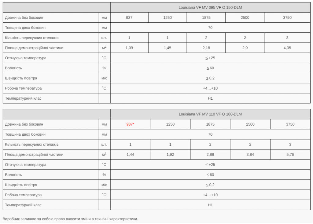 Магазин / Комерційне холодильне обладнання / Холодильні гірки / Гірка середньотемпературна під овочі LOUISIANA VF MV 095/110 VF M (+4˚С … + 6˚С) під виносний холод