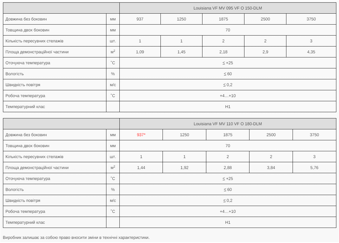 Гірка середньотемпературна під овочі LOUISIANA VF MV 095/110 VF M (+4˚С … + 6˚С) під виносний холод