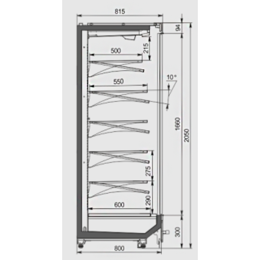 Лінія холодильних середньотемпературних (0˚С … + 8˚С) гірок під виносний холод: 2500 мм + Ув90 + 2500 мм (з дверима), динаміка.